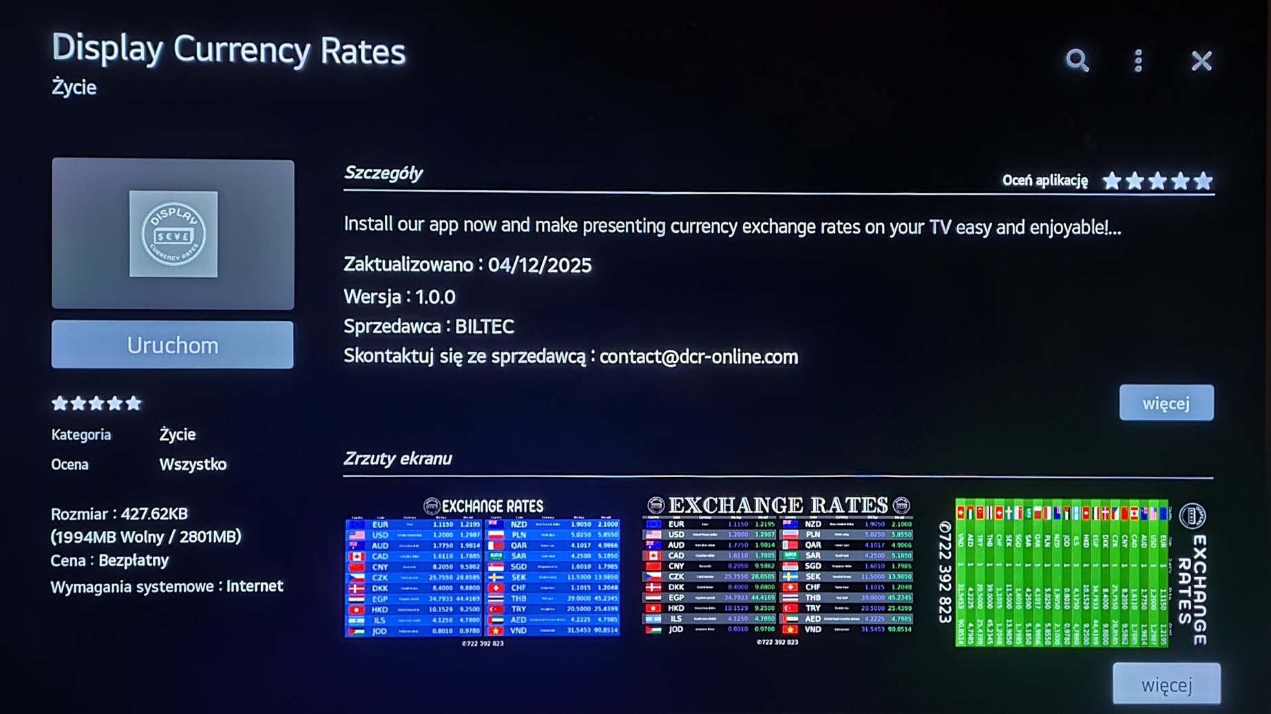 Search for the 'Display Currency Rates' app. After installation and launch, pairing works analogously to the Android TV app see 5.